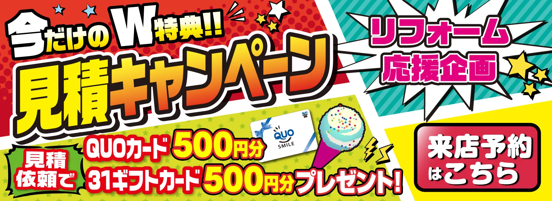【秩父・深谷ショールーム】5/13~6/30の期間中に、ホームページから見積り依頼でQUOカード500円分+31アイスクリームギフト券500円分プレゼント! この機会をどうぞお見逃しなく! いつもありがとうございます。埼玉県深谷市・熊谷市・秩父市・寄居町のリフォーム・増改築・リノベーションは丸山工務店へお任せください!