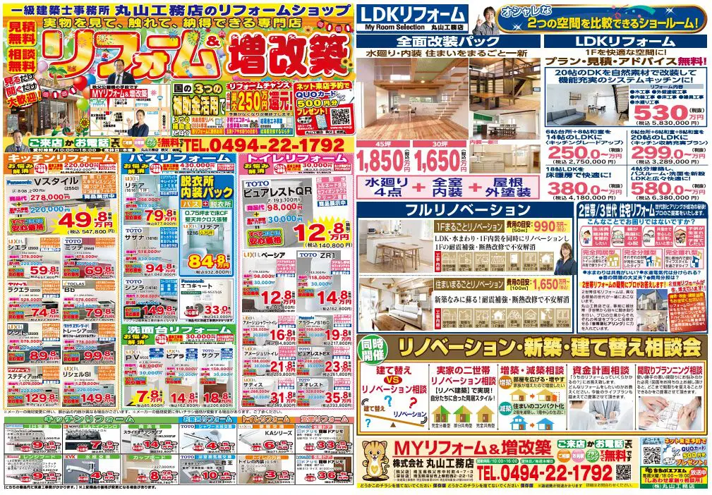 【秩父・深谷ショールーム】 お風呂・キッチン・洗面化粧台・トイレをまとめてリフォームするとお得! 期間中に、このページから来店予約→ご成約の方にカタログギフト2万円分プレゼント♪ お得なキャンペーンをお見逃しなく! いつもありがとうございます。埼玉県深谷市・熊谷市・秩父市・寄居町のリフォーム・増改築・リノベーションは丸山工務店へお任せください!