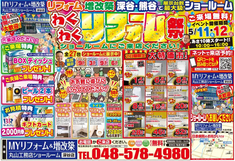 2024年5月11(土)・12(日)は深谷ショールームへ!ゴールデンウィークのあとはお得がいっぱいのイベントへ遊びにいらっしゃいませんか?ご家族皆様でのご来場をお待ちしています いつもありがとうございます。埼玉県秩父/深谷地域のリフォーム・増改築・リノベーションは丸山工務店へお任せください!