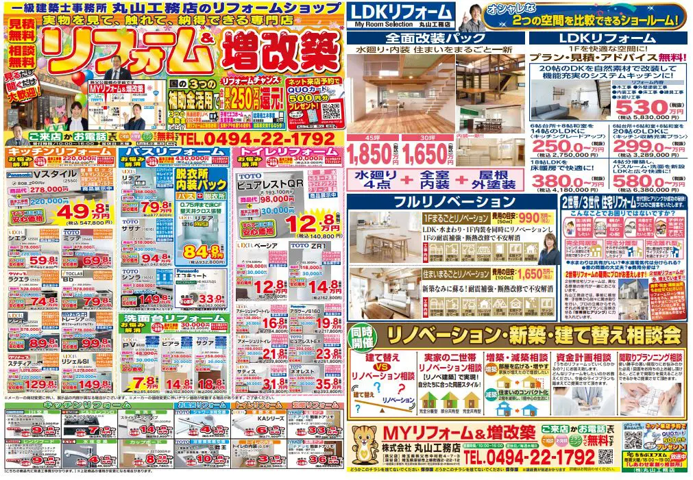 今年もあと1か月!来年のリフォーム計画は今のうちに!ご相談は丸山工務店へ キッチンリフォーム/お風呂リフォーム/トイレリフォーム/洗面化粧台リフォーム/給湯器交換/屋根・外壁リフォーム