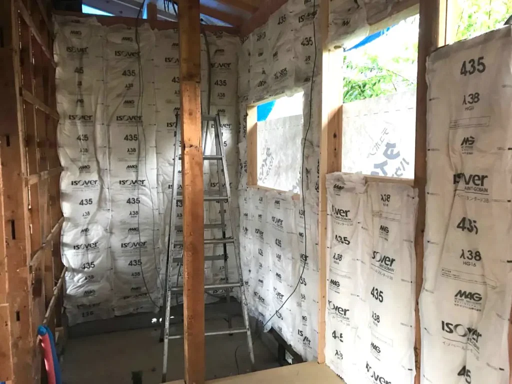 窓は高性能のサッシに入替え、室内側の壁には断熱材を施工します。
