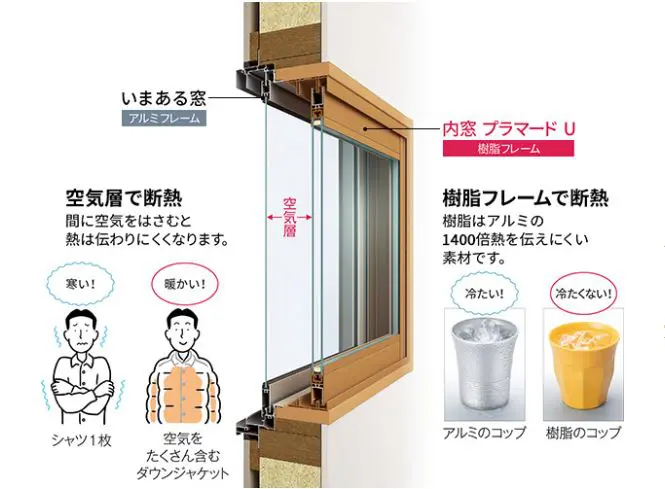 今ある窓に内窓を取付けて二重窓に。 窓の断熱性を高め、住まいの暑さ寒さのお悩みを解消できます。 室外からの騒音対策にも効果的です。