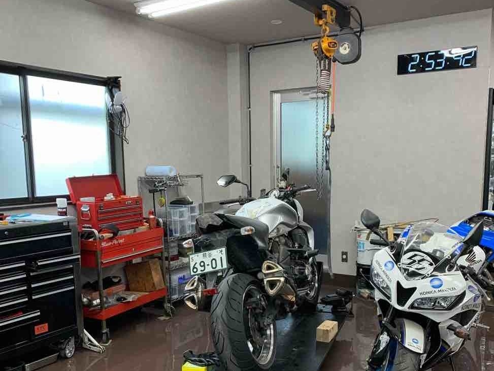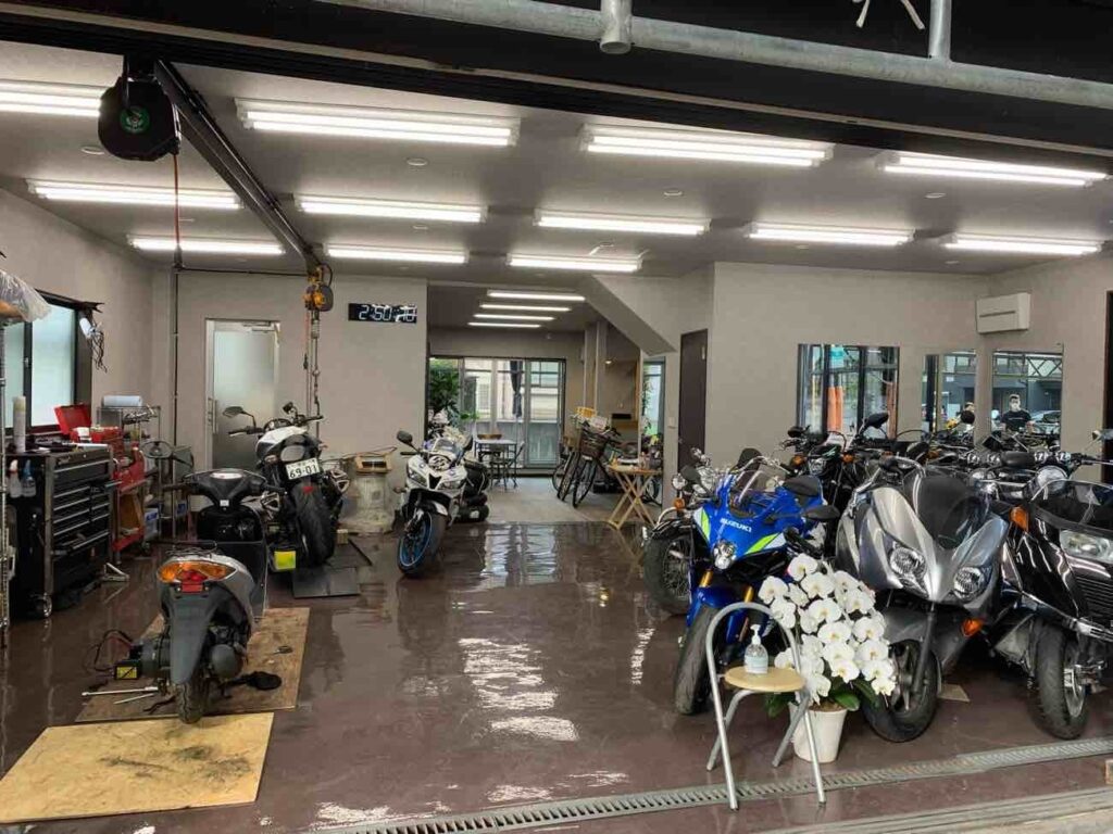【秩父市/店舗リノベーション】老舗バイク店大改修!商品も見やすく、修理コーナーも充実♪内装はオーナーこだわりのセレクトです!