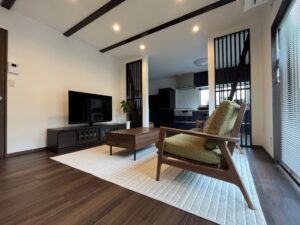 【秩父市・リノベーション】豪雨で床上浸水した家を見事に再生/筋交いも良いアクセント/和モダン/Panasonicキッチン/