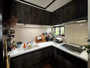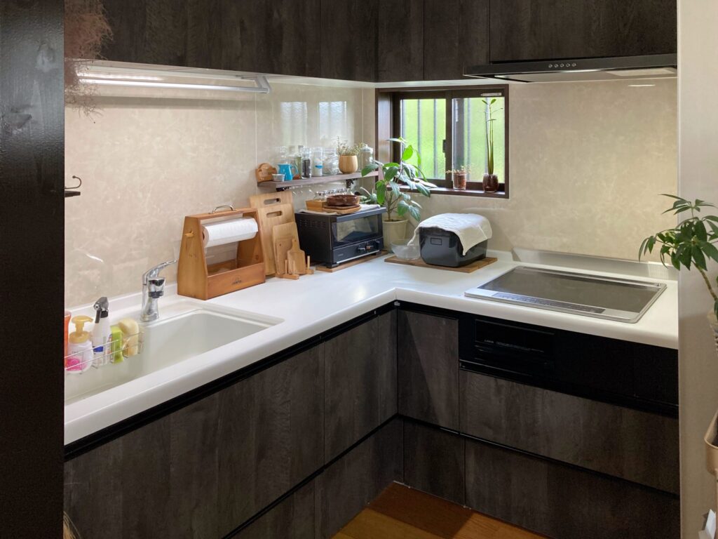 【秩父市/キッチンリフォーム/増築】0.5坪増築でL型キッチンがIN♪人気のブラックも木目調なら上品でシック♡
