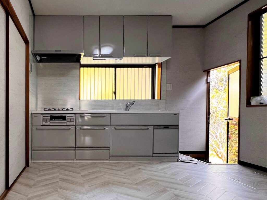 【秩父市/キッチンリフォーム】お手入れがラクなホーローシステムキッチン!ヘリンボーンの床やキッチンパネルのカラーもトータルコーディネートしました♪