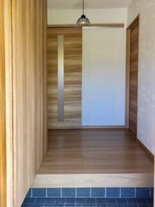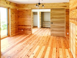 【秩父市/リノベーション】ワイルドな杉の無垢材をふんだんに使った木の香りの家/水廻りの配置変更でゆったり動線に/アイアンの照明器具